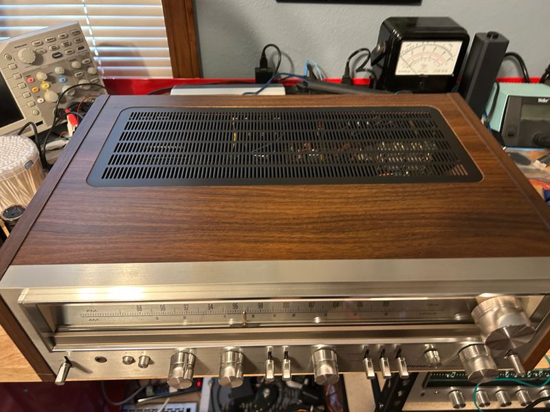 Amplifier bias current adjusted, meters calibrated, and tuner section alignment checked.