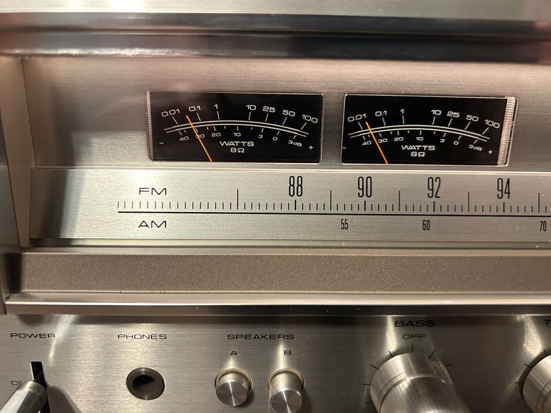 Exceptionally nice Pioneer SX-780. 45 watts per channel, 0.05% THD. One-owner, nearly perfect condition. Recapped (all electrolytic capacitors replaced). STK power packs upgraded to Delta9 discreet component power packs, to ensure long life and serviceabilty (original STK packs were working). The Delta9 power packs are rated at 100 watts, providing excellent sound quality and reliability (original Sanyo STK packs are no longer available, so most replace with cheap $15 Chinese knock-offs that don't last long). Heat sink compound replaced on voltage regulator transistors. Solder connections checked and resoldered as needed. All switches and controls cleaned. Amplifier bias current set, meters calibrated. Sounds great, looks fantastic.